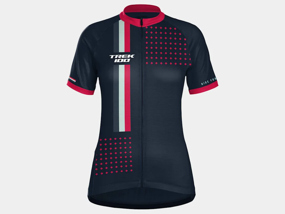 Show your support for one of the biggest charity rides of the year in the Trek 100 Women’s Cycling Jersey. It’s stitched from high-performance, moisture-wicking materials and features a full-length zipper, three back pockets, and a drop-tail design.