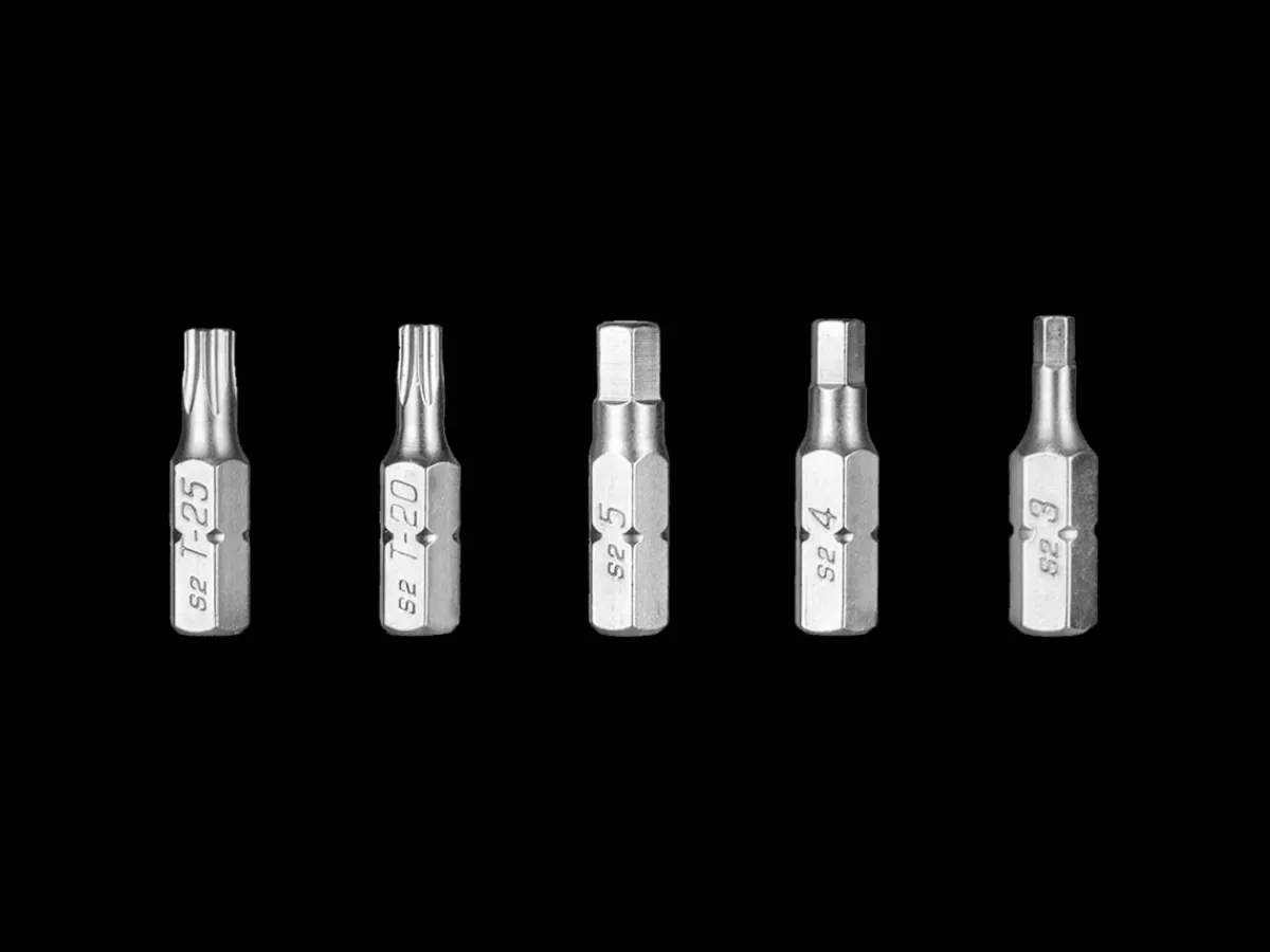 An incredibly compact torque wrench with adjustable torque value range of 2-10 Nm. A standard hex drive reversible ratcheting head with adjustable preset torque values allows you to tighten frame or component bolts safely and with confidence. Includes a five bit storage pen with visible window design letting you find the correct bit quickly and easily.