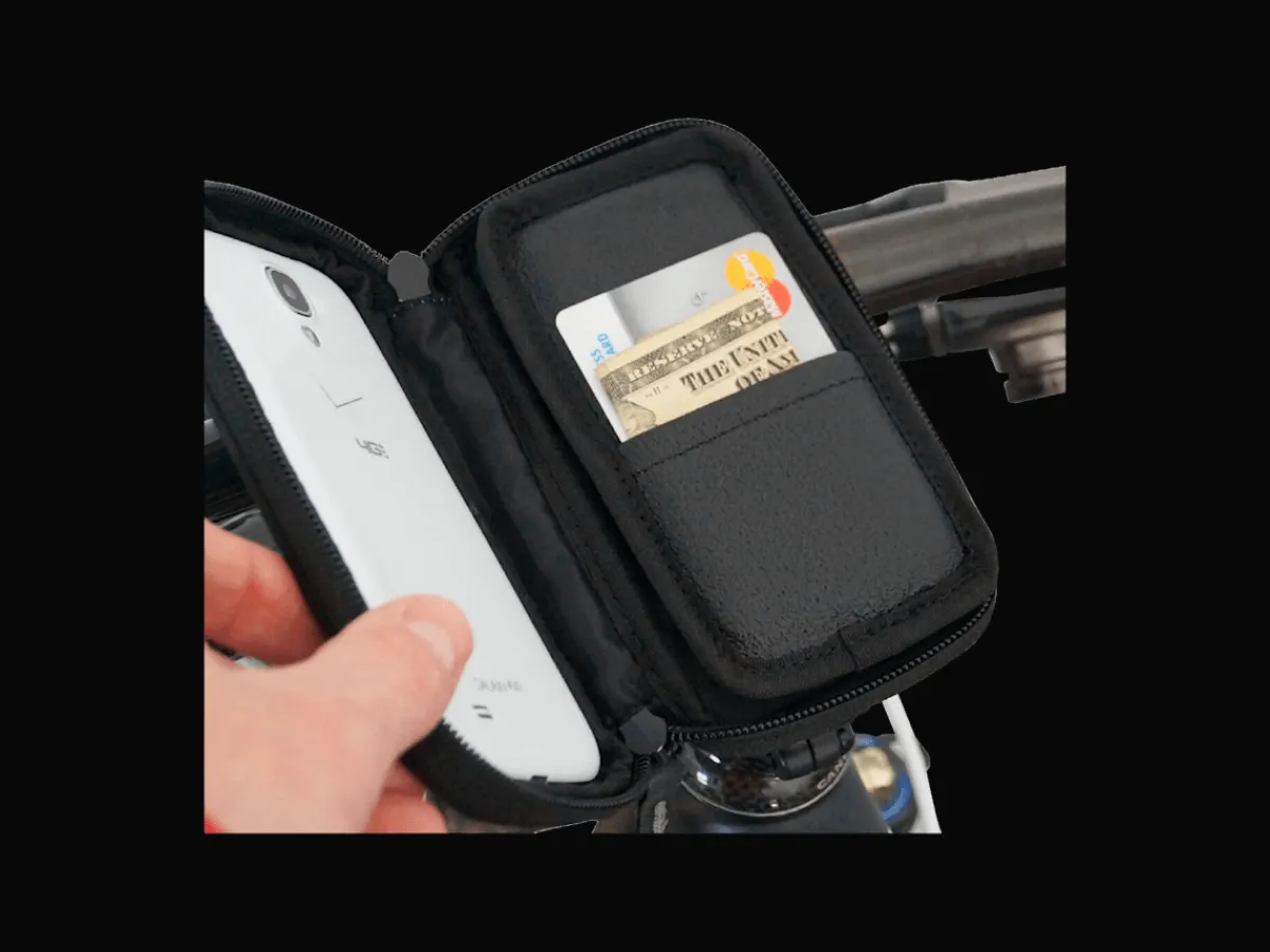 Removable cushioned spacer for larger phone cases, includes ID/money sleeve