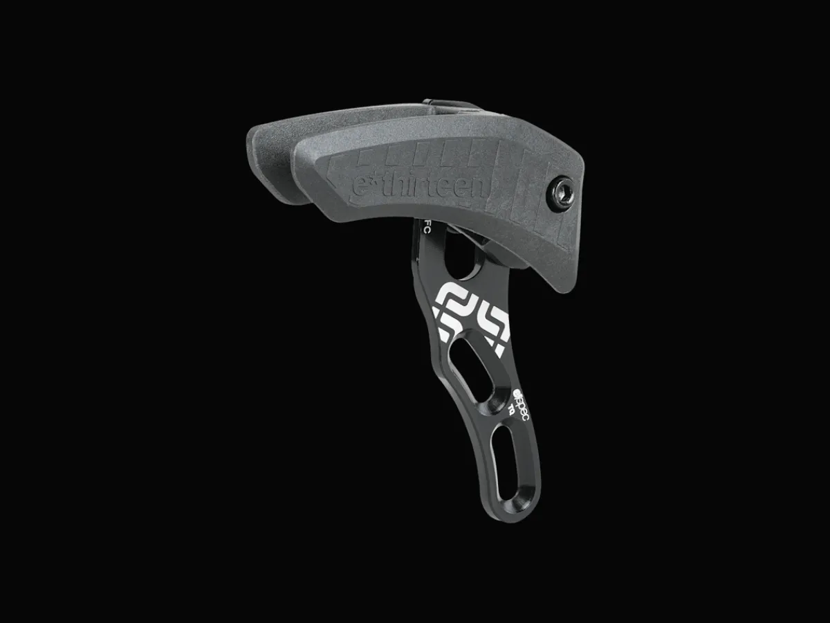 The e*Thirteen chain guide developed with Trek helps keep the chain locked on the chainring of Fuel EXe bikes when pedaling over rough terrain.