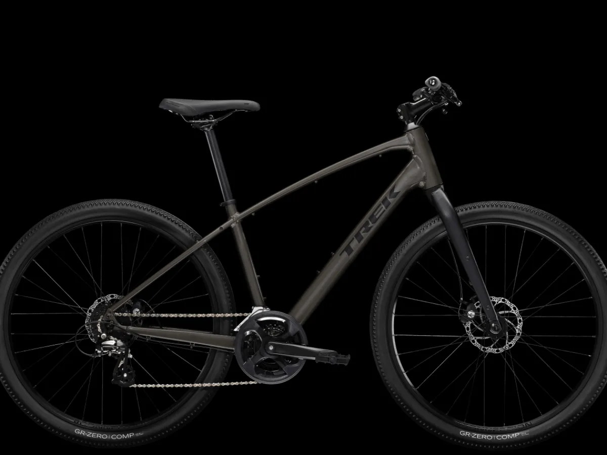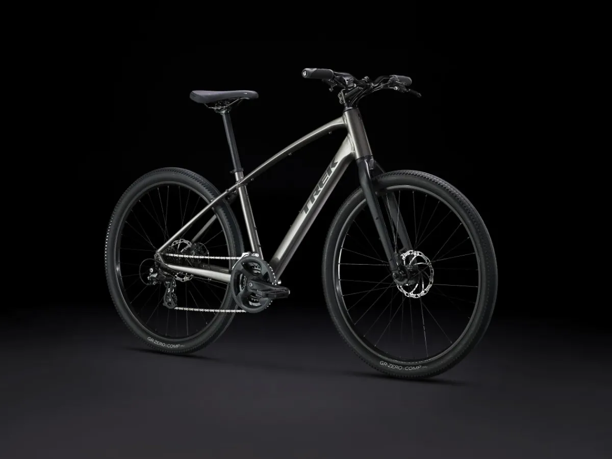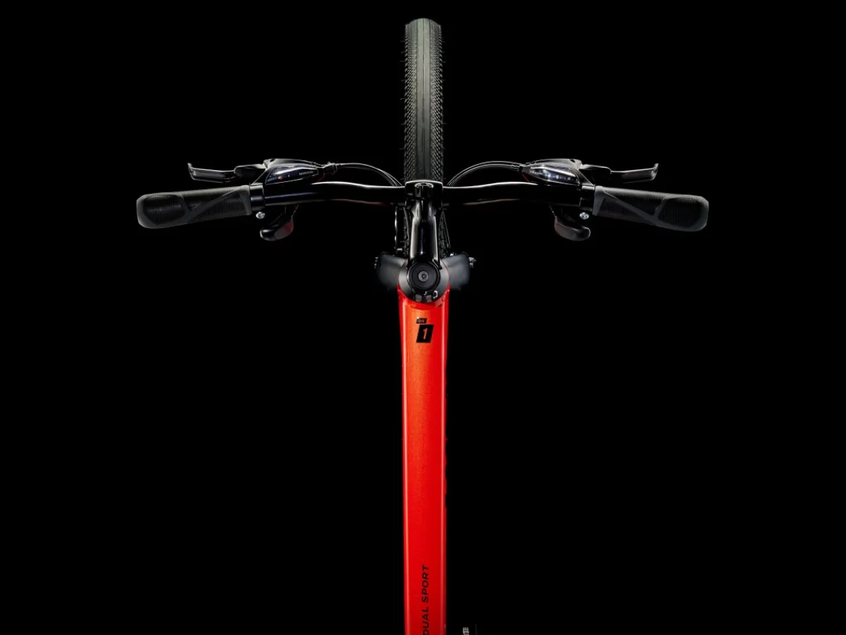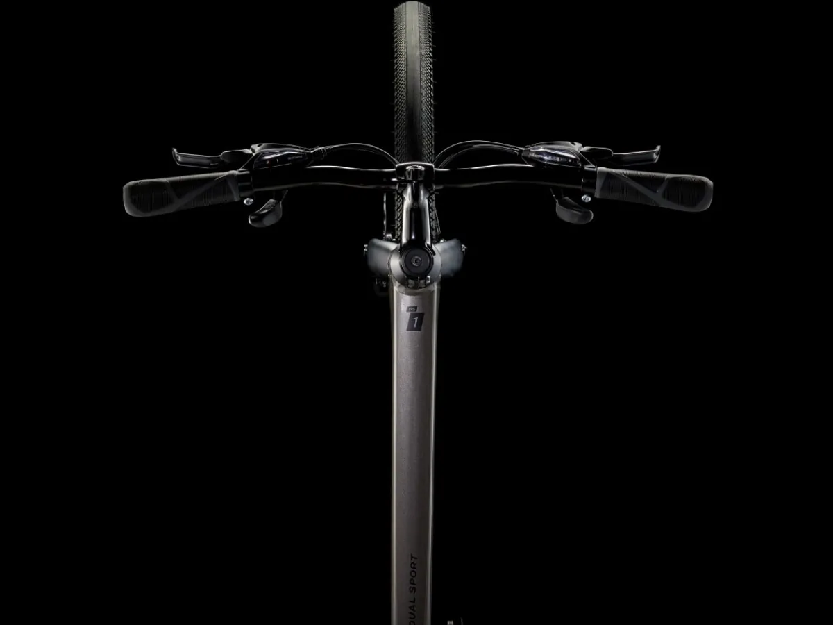 Dual Sport 1 is a go-anywhere hybrid bike that’s fun to ride on a variety of surfaces. It has a light frame, a sturdy drivetrain, and powerful brakes. Wide wheels and lofty tires soak up bumps and rough terrain for a comfortable, confident ride on pavement, light gravel trails, bike paths, and more.