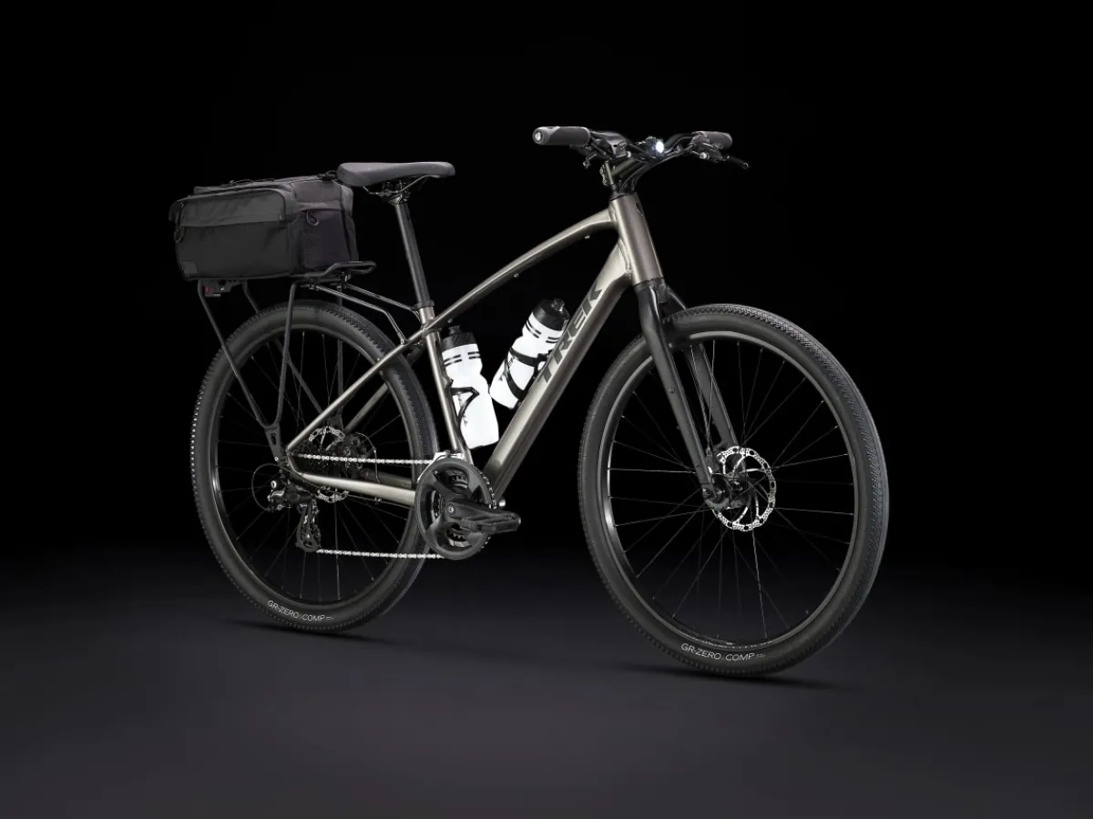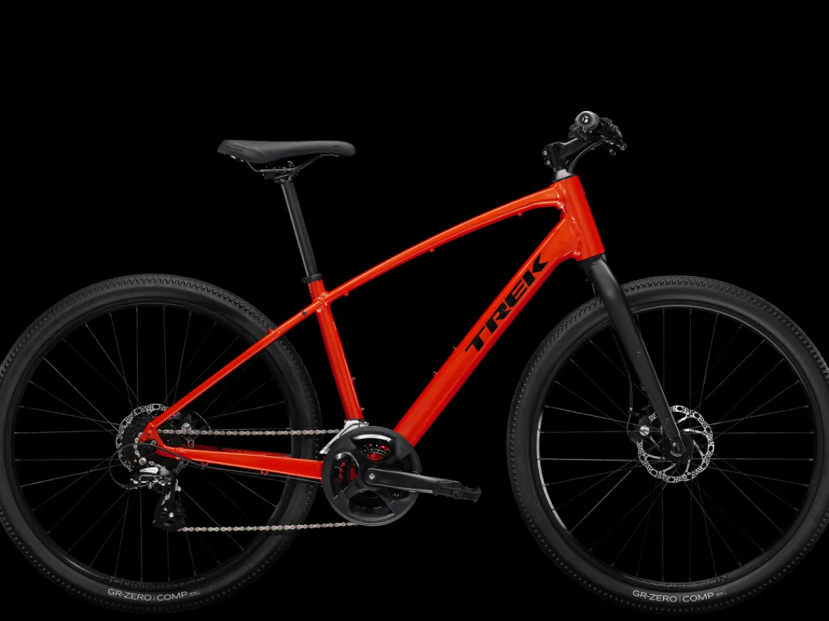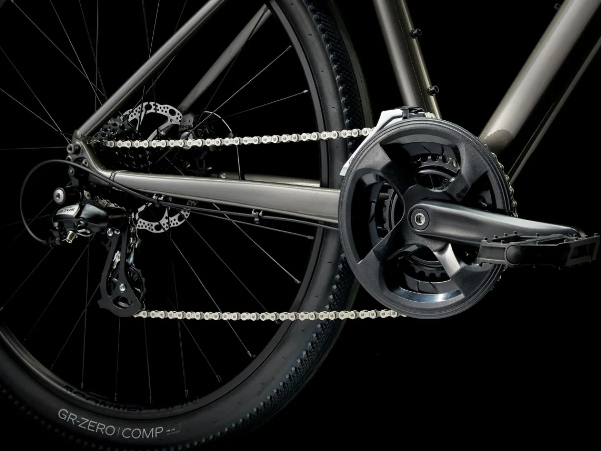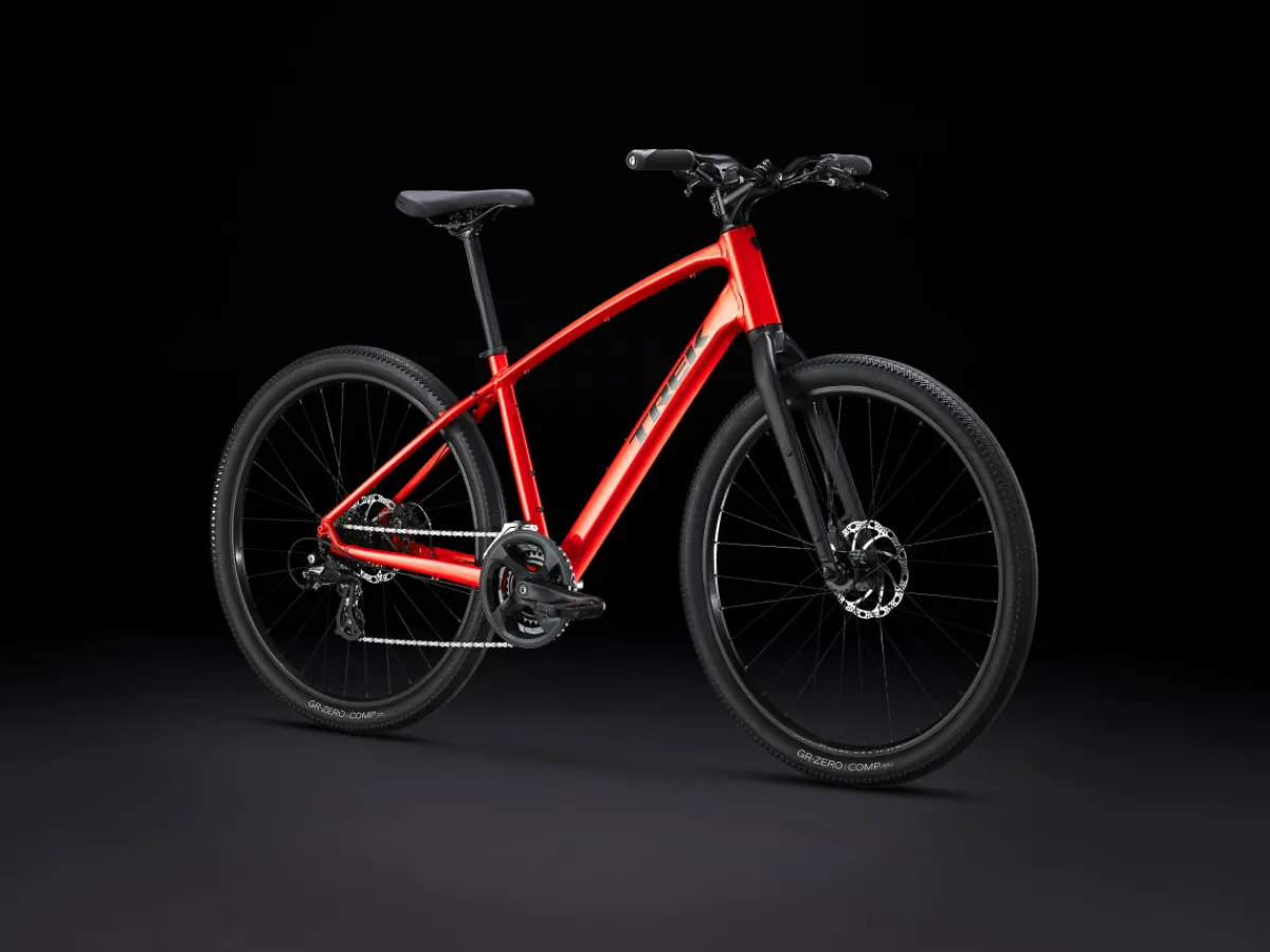 Dual Sport 1 is a go-anywhere hybrid bike that’s fun to ride on a variety of surfaces. It has a light frame, a sturdy drivetrain, and powerful brakes. Wide wheels and lofty tires soak up bumps and rough terrain for a comfortable, confident ride on pavement, light gravel trails, bike paths, and more.