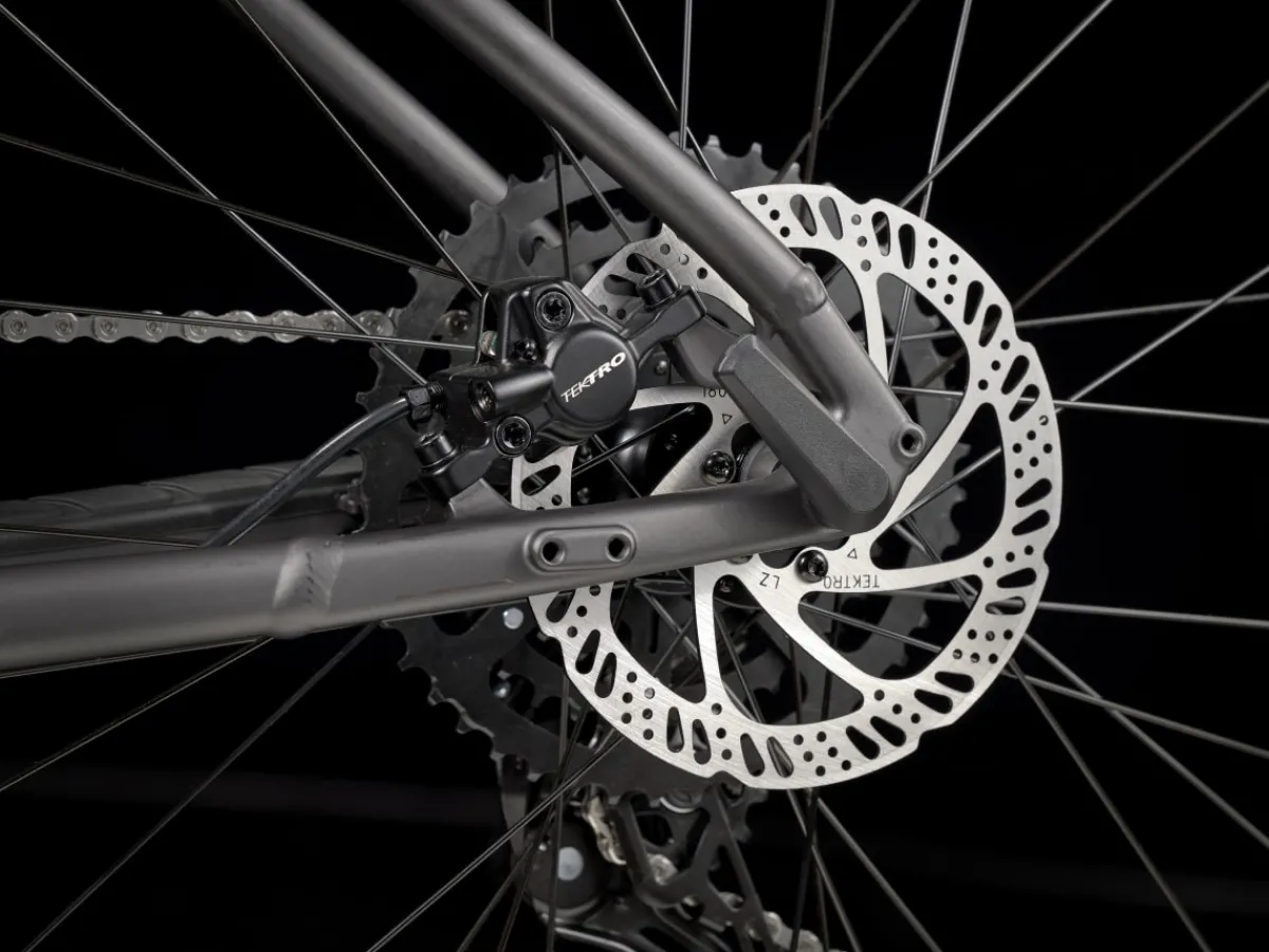 Marlin 5 is a trail-worthy daily rider that’s perfectly suited for everyday adventures, on and off the trail. It features a trail-savvy frame with a suspension fork, 9-speed Shimano CUES shifting, and mounts for a rack and kickstand that make it an ideal choice for trail riders or anyone looking for a comfortable, stable commuter with the ruggedness of a real mountain bike.