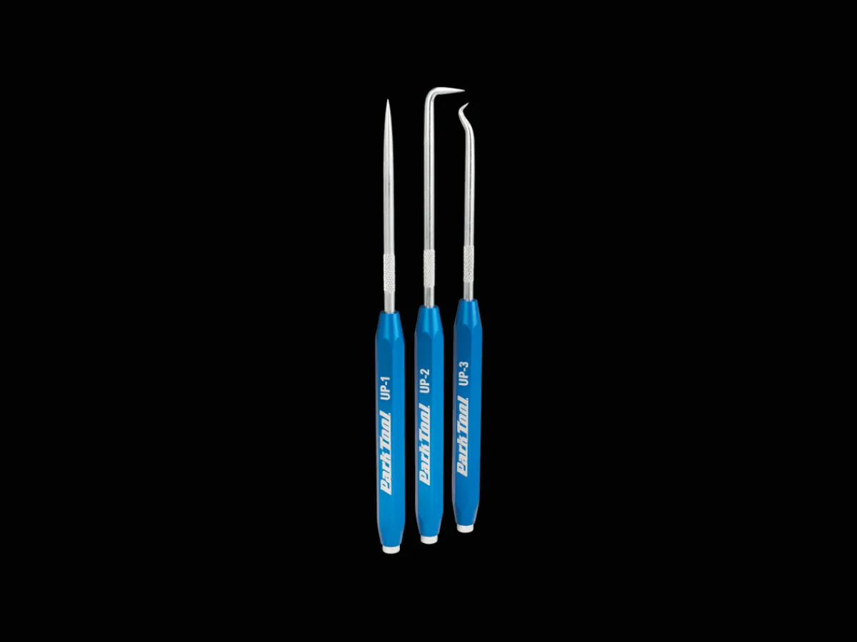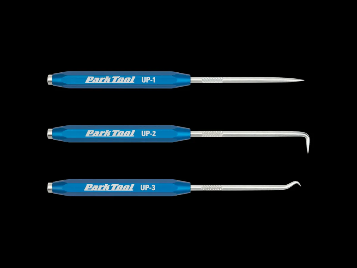 UP-SET is a set of three unique, multi-purpose picks ideal for a wide variety of detail work from removing bearing covers to routing internal cables and housing.