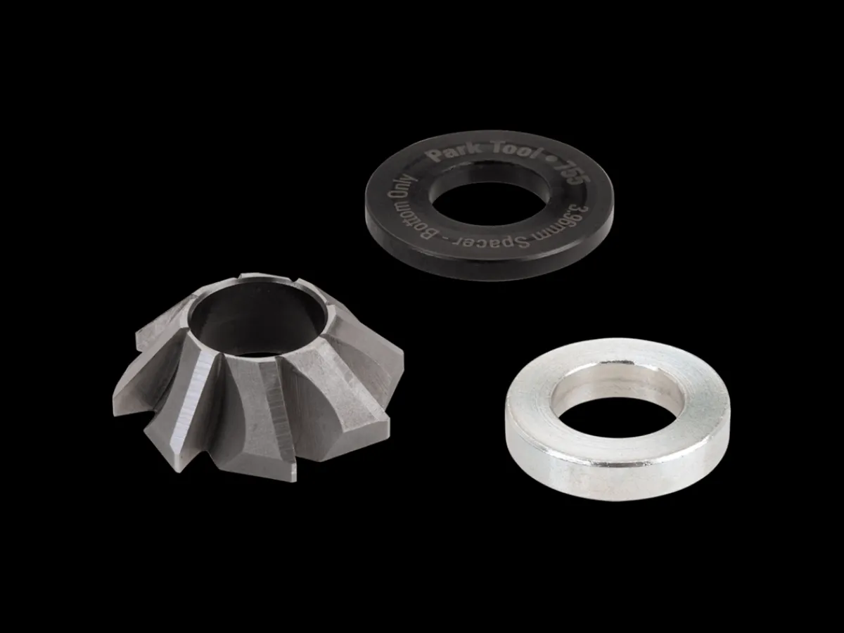The 756S.2 Reaming Facer Set is used in conjunction with the Park Tool 690-XL Oversized Facer or 687 Reamer Stop to machine head tubes using IS41 or Cane Creek Standard headsets (41mm x 45 degrees).