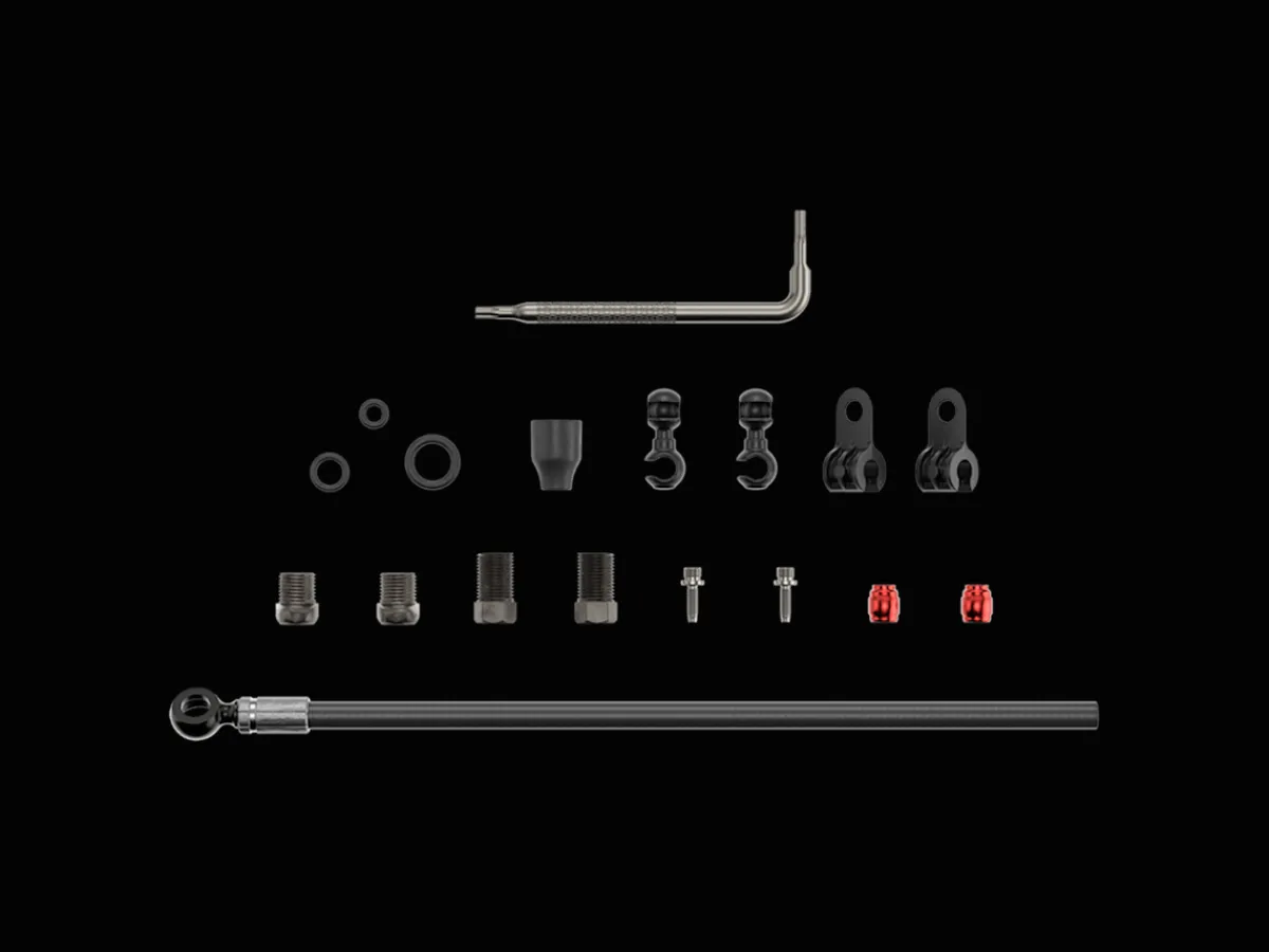 The Black Banjo Hydraulic Brake Hose Kit fits both SRAM road and mountain bike brakes that feature a black banjo fitting at the caliper. The hydraulic line kit includes all replacement parts.