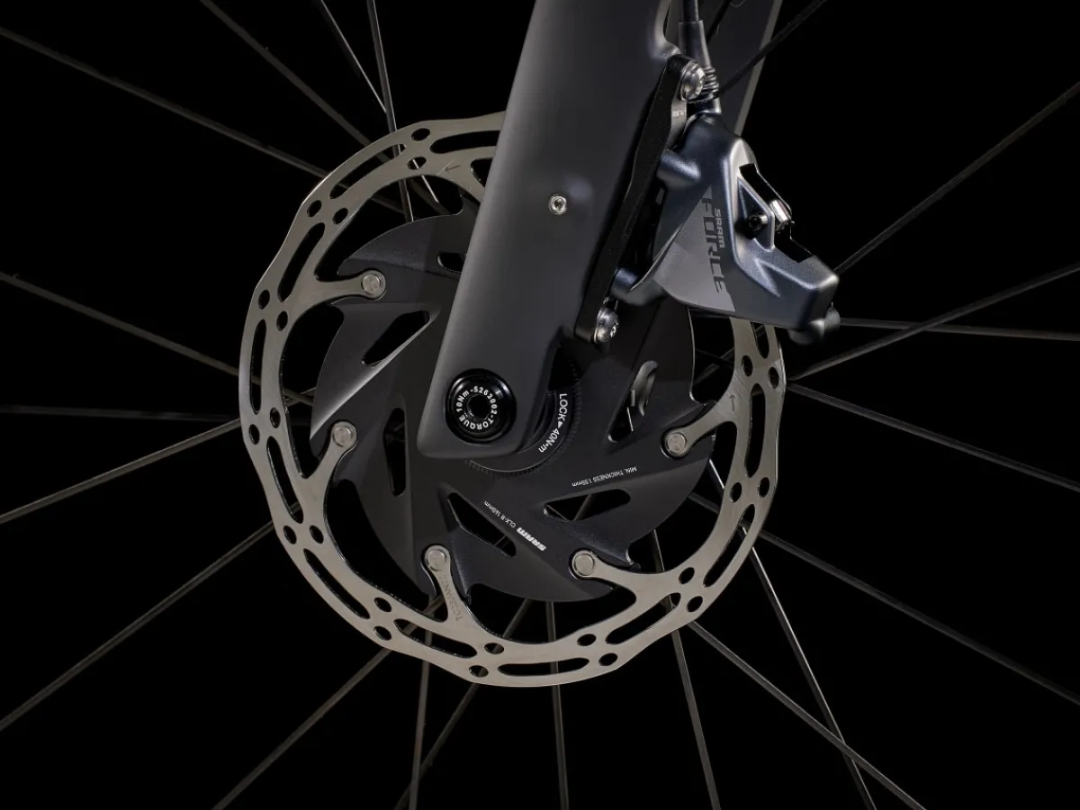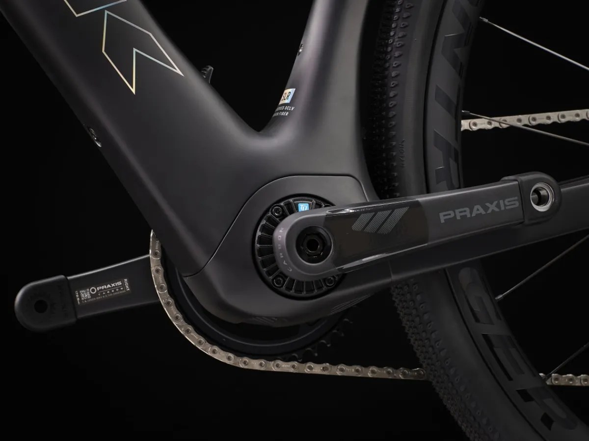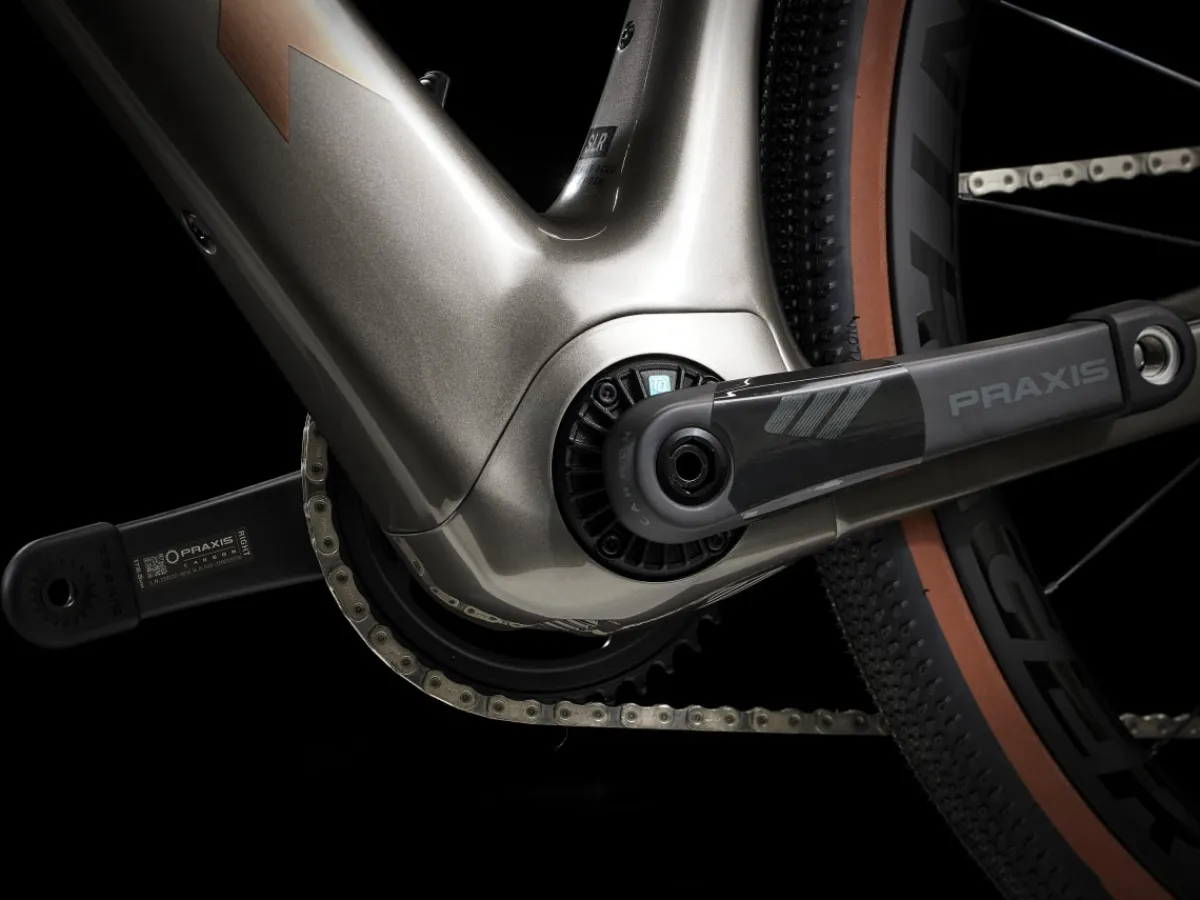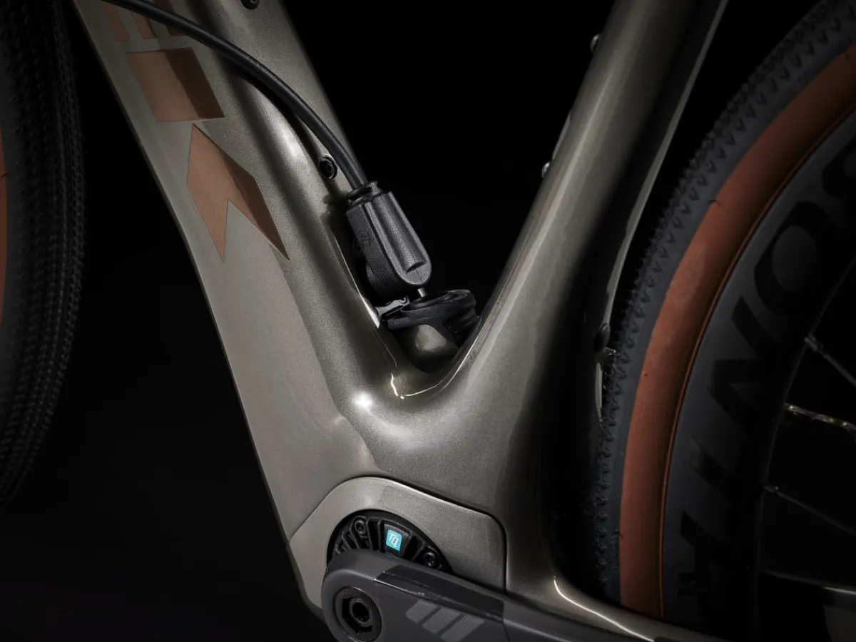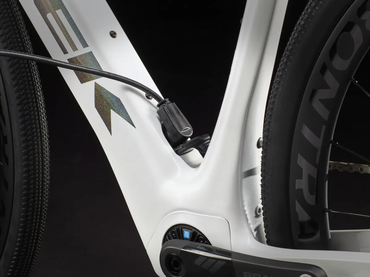 Domane+ SLR 7 is a category-redefining, high-speed assist carbon e-road bike that doesn’t look, fit, or feel like a standard e-bike. It’s built on an 800 Series OCLV Carbon frame that hides a compact and refined motor to elevate your ride with natural-feeling assist. The motor quietly blends in with the elements, all but disappearing under you on peaceful solo spins and club rides, so you stay more connected to the experience while enjoying extra power for crushing climbs and long, epic adventures. Plus, you get the custom-tunable shifting of SRAM’s wireless Force AXS 12-speed drivetrain.