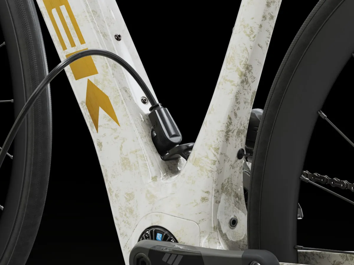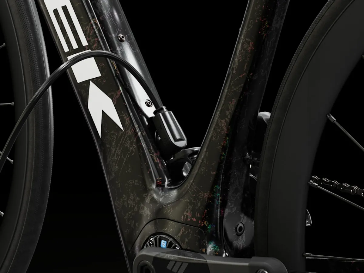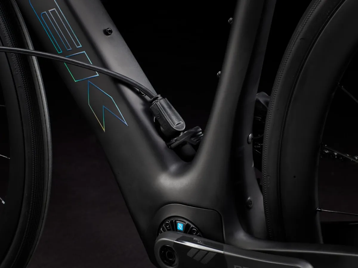 Domane+ SLR 7 is a category-redefining carbon e-road bike built with intensely light 800 Series OCLV Carbon. It hides a compact and refined motor to elevate your ride with natural-feeling assist that quietly blends in with the elements, all but disappearing under you, so you stay more connected to the experience while enjoying extra power for crushing climbs and long, epic adventures. Plus, it offers the ultra-fast shifting of a Shimano Ultegra Di2 drivetrain.