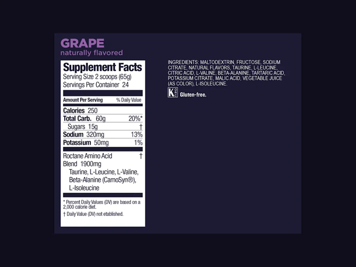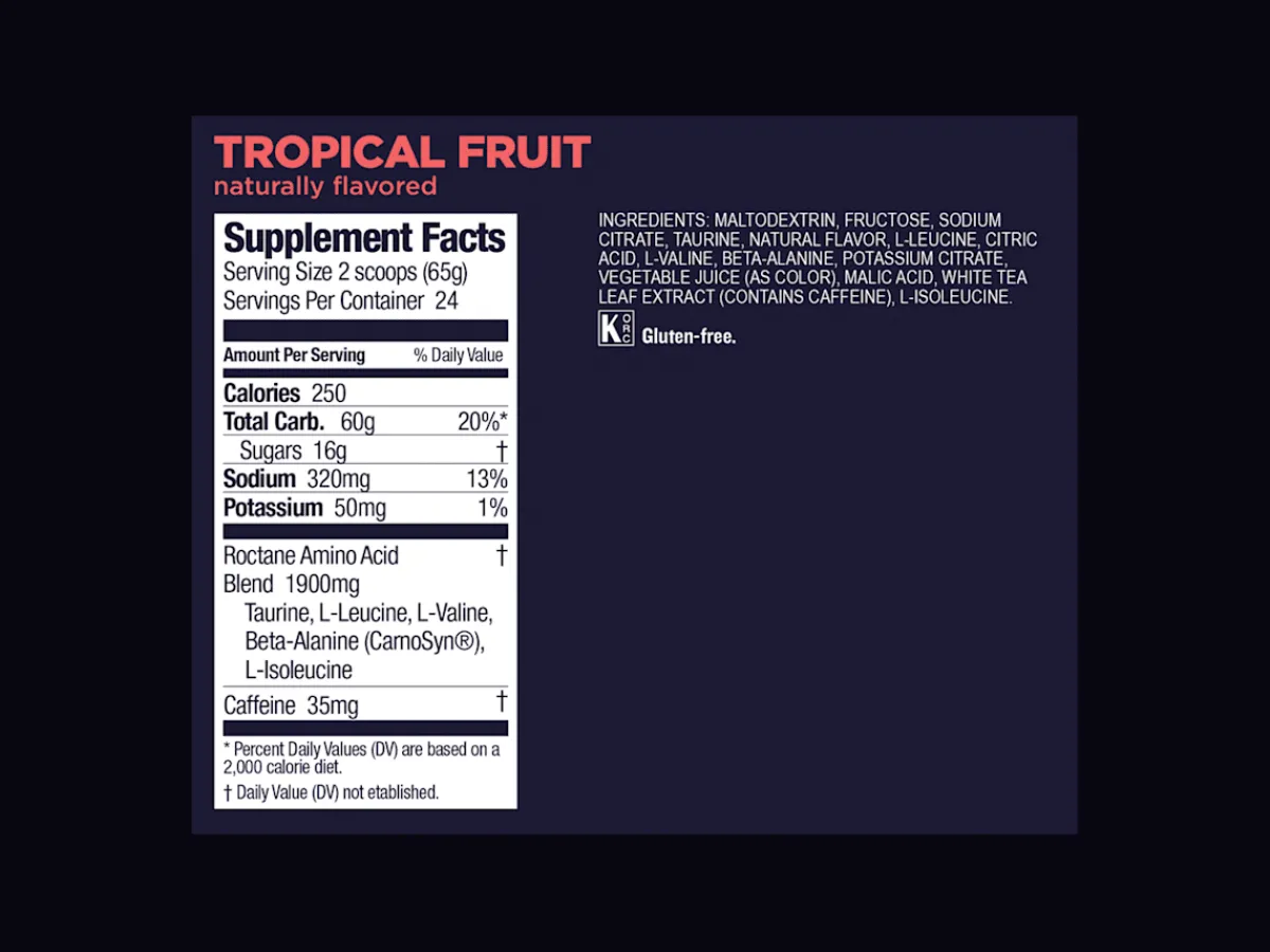 ROCTANE Energy Drink Mix is an all-in-one option for energy and hydration with electrolytes and branched-chain amino acids to keep you feeling strong and energized. Complex and simple carbohydrates will fuel you up, so you feel good, longer.