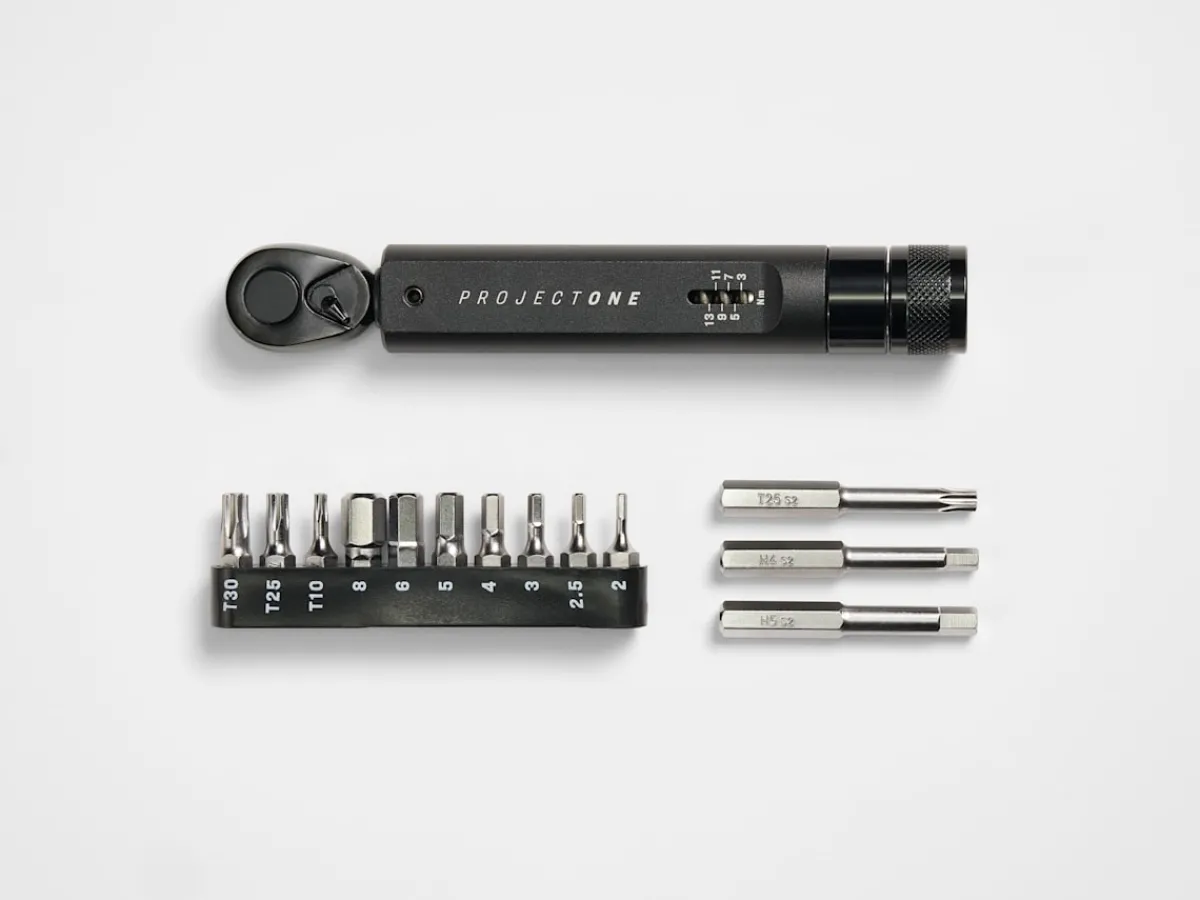 This exclusive Project One branded torque wrench was built in collaboration with Feedback Sports to bring you the ultimate tool to take care of your ultimate Project One bike. It features a solid, tactile click-torque function with a wide measurement range and user-friendly ergonomics give this torque wrench precision performance to match its looks.