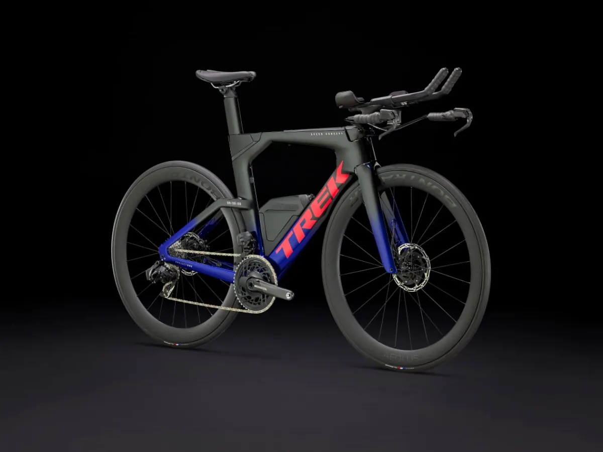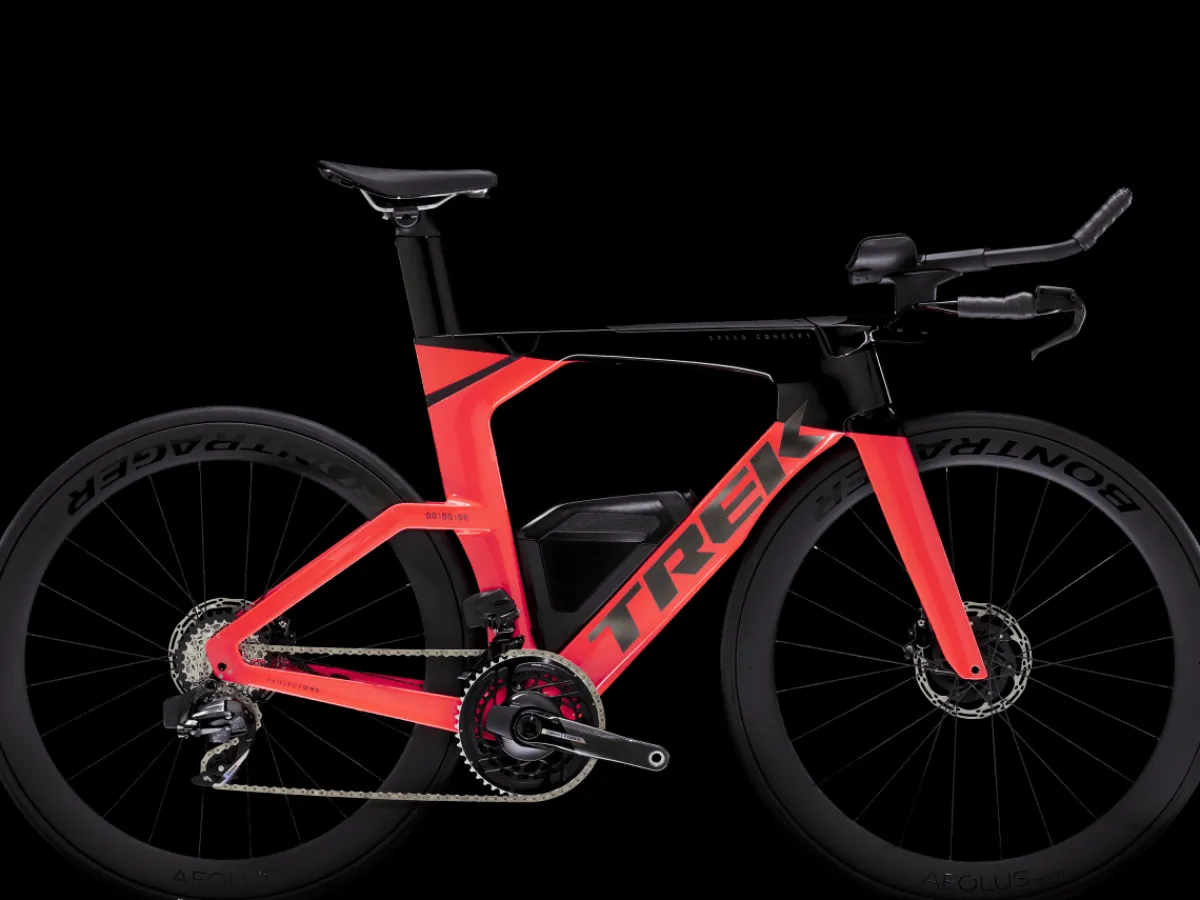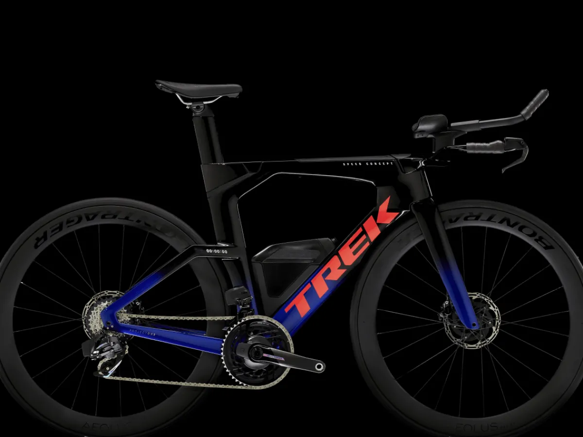 Speed Concept SLR 7 AXS is an aerodynamic carbon triathlon bike engineered for incredible speed and seamless integration. Every bit of this bike – from the light aero frame to ride-smoothing IsoSpeed, cutting-edge fuel and hydration systems, and a SRAM Force AXS D2 wireless electronic drivetrain – has been painstakingly designed to help you beat your PR again, and again, and again.