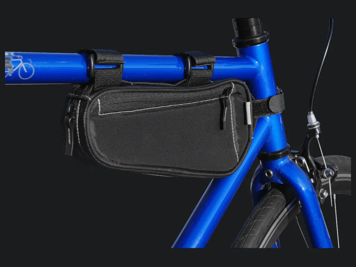 The Little John Frame Bag is a small storage bag that’s designed to fit on or below the top tube while you ride.