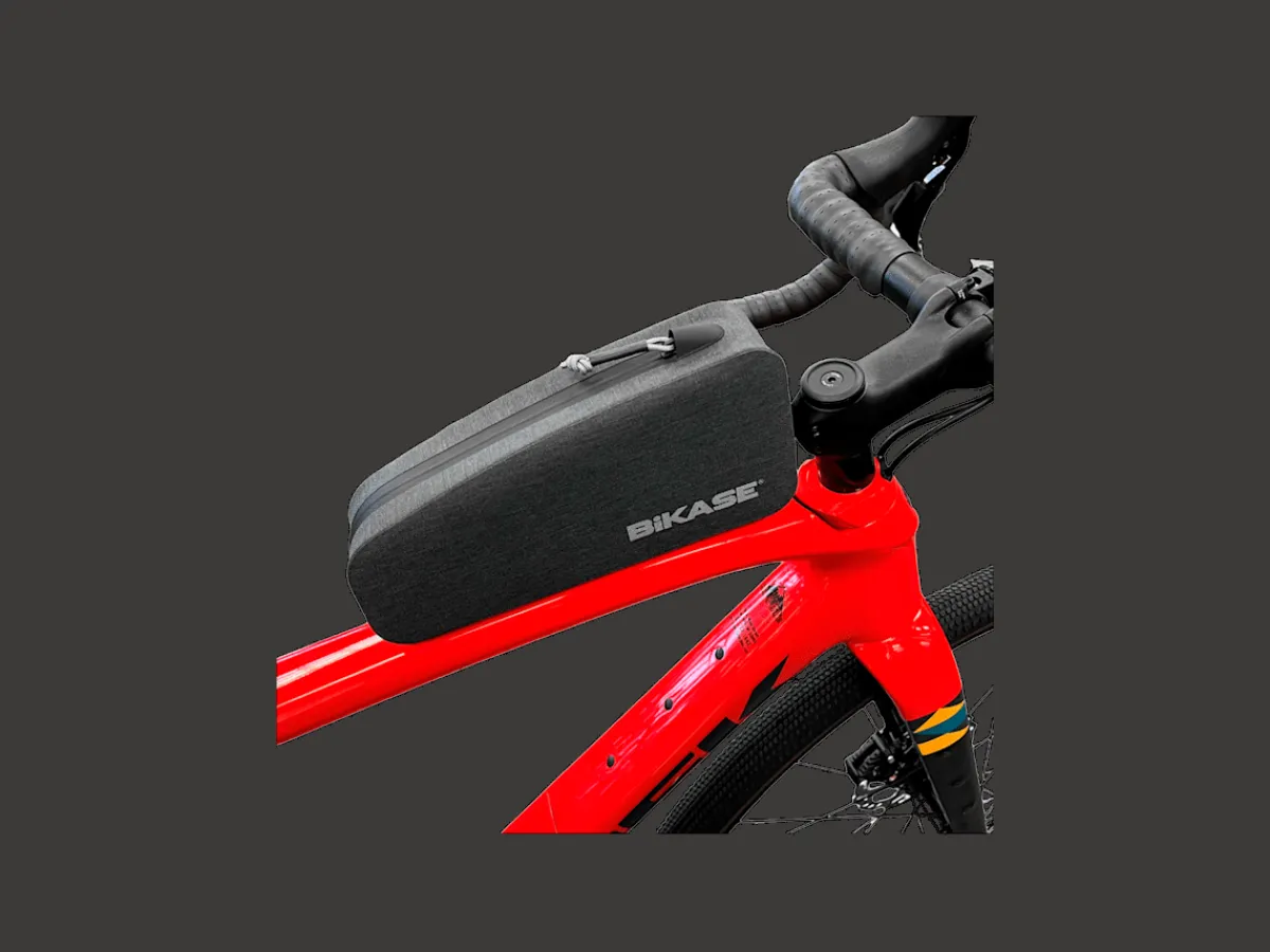 With bolt on or strap mounting, the BiKASE Side Kick Top Tube Bag fits in an aerodynamic position behind your stem to keep your phone, wallet, and snacks accessible while riding.