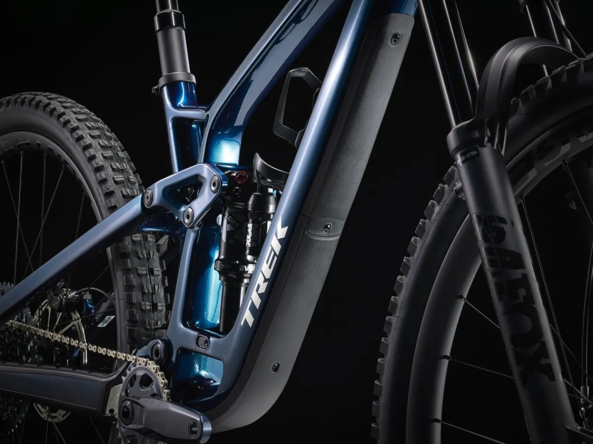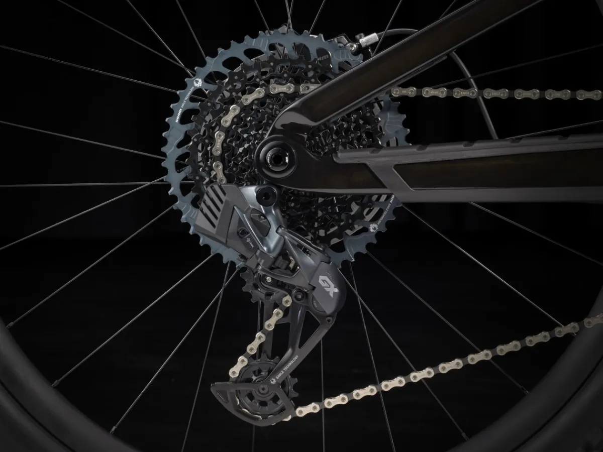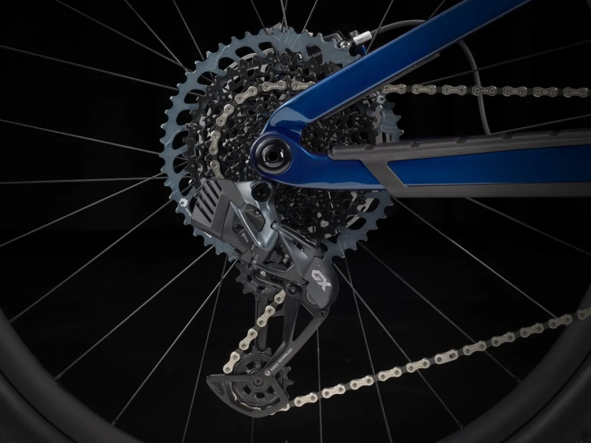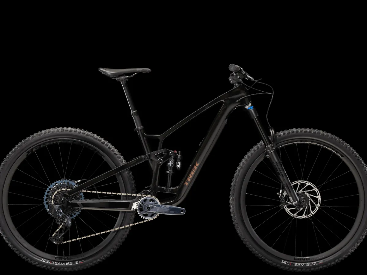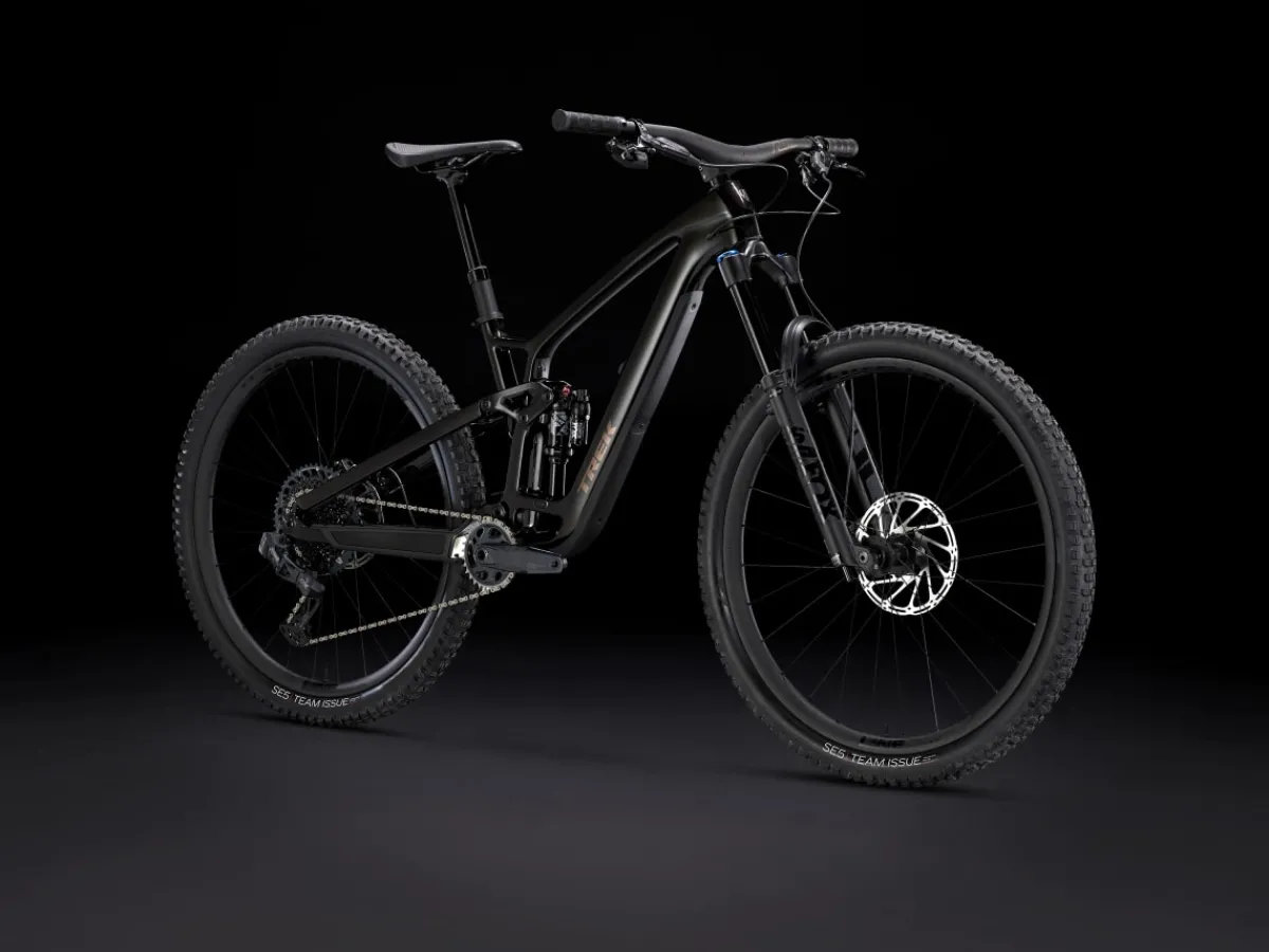 Fuel EX 9.8 is a hard-charging trail bike with a light and stiff carbon frame that’s smooth, quiet, and holds its own when you pick a line. It’s loaded with the latest tech like a wireless SRAM GX AXS drivetrain that’s super clean looking and customizable. 150mm front and 140mm rear suspension keep you in control on the roughest trails and it’s all topped off with carbon Bontrager wheels with a quick-engaging hub.