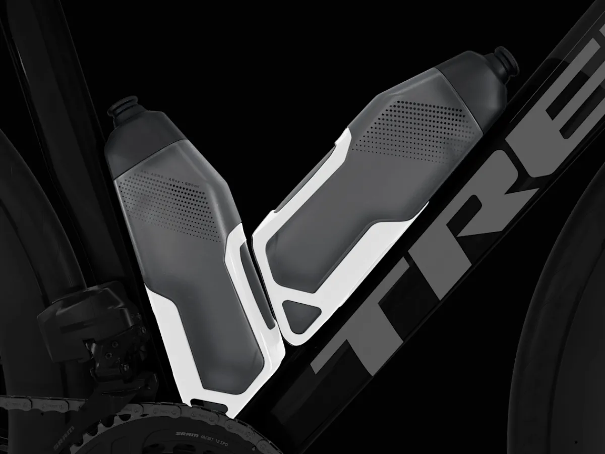 The Trek RSL Aero Water Bottle and Cage is designed for the Madone Gen 8 and proven to make your race bike — even from other top brands — faster. The system is UCI compliant and the cage also holds round bottles making it the ultimate hydration system for your bike.