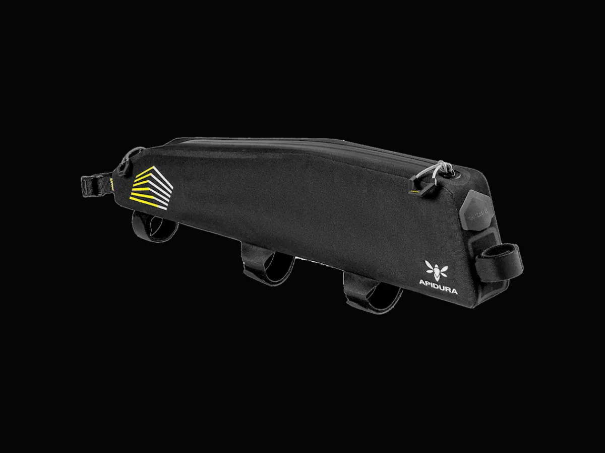 The Apidura Racing Long Top Tube Pack is designed for ultra-distance cycling competition and riders who need to carry a bit more, have smaller frames, or simply want more close-to-hand storage while riding.