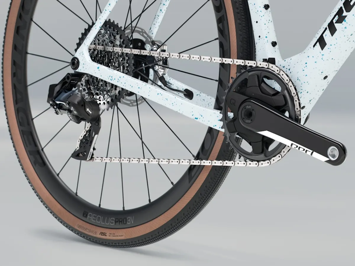 Checkmate SLR 8 AXS is a carbon gravel race bike built to toe the line and kick up dust on the long and rough road. To deliver the performance you crave on race day, Checkmate combines a lightweight aero design with IsoSpeed and new Gravel Race geometry that keeps you poised for the attack without eating up your energy. It’s topped off with a 1×12 previous generation SRAM RED XPLR AXS wireless drivetrain, carbon wheels, and Trek Aero RSL bar/stem for a lightweight build.