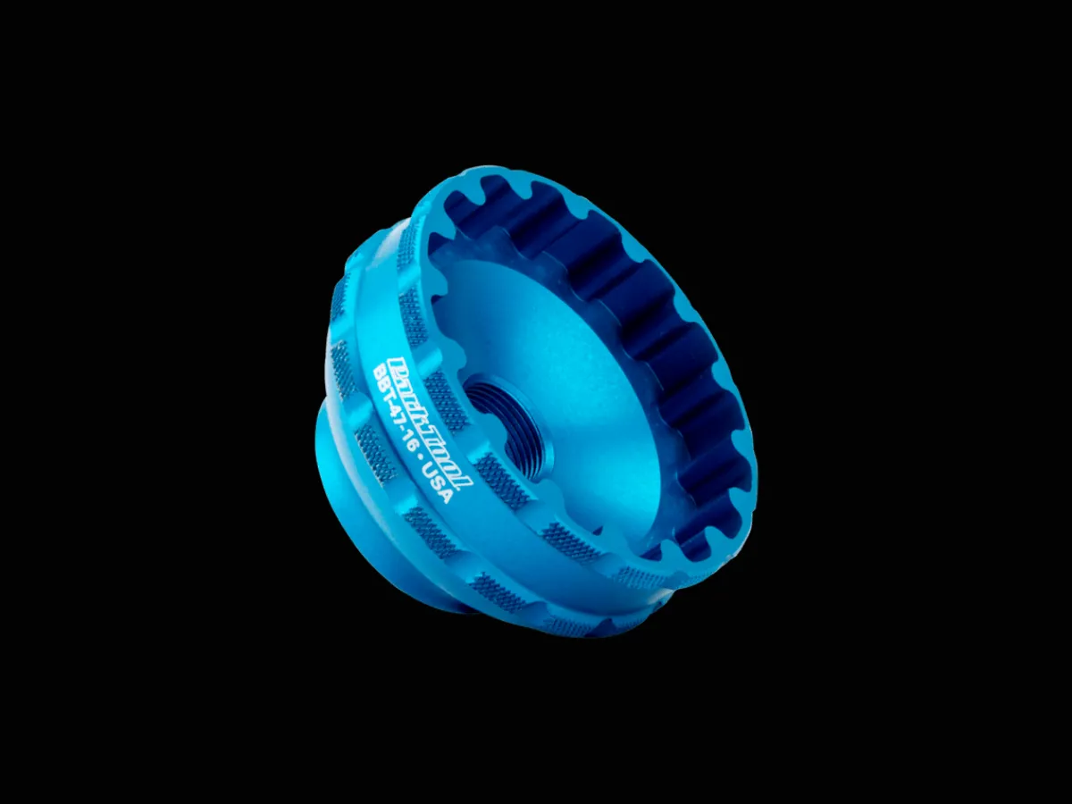 A precision CNC-machined aluminum tool for the installation and removal of select threaded bottom brackets with 16-notch tool fittings, including Enduro® T47 & PF30 bottom brackets.