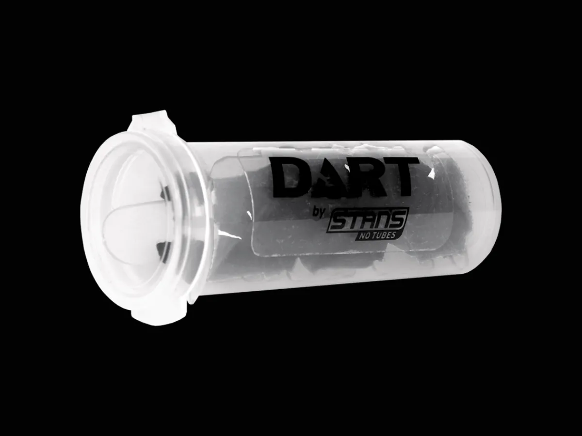 Dual Action Repair for Tubeless (DART) is designed to fix damaged tires faster, easier and better than existing plug tools. While traditional tire plugs try to wedge rubber strips into a puncture, the DART creates a chemical reaction with Stan’s sealant to quickly form a permanent airtight bond.