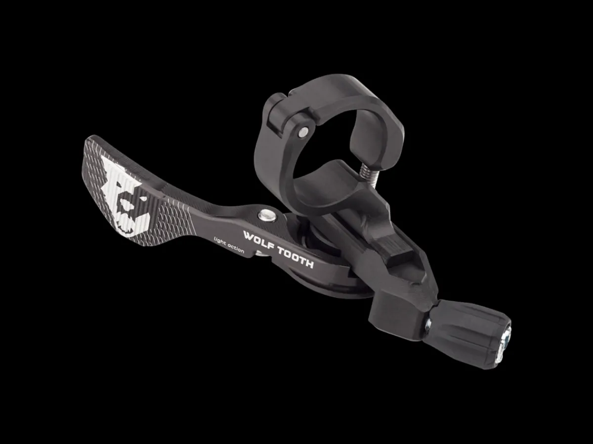 Cable attached at lever with integrated barrel adjuster, making on-the-fly adjustments quick and easy