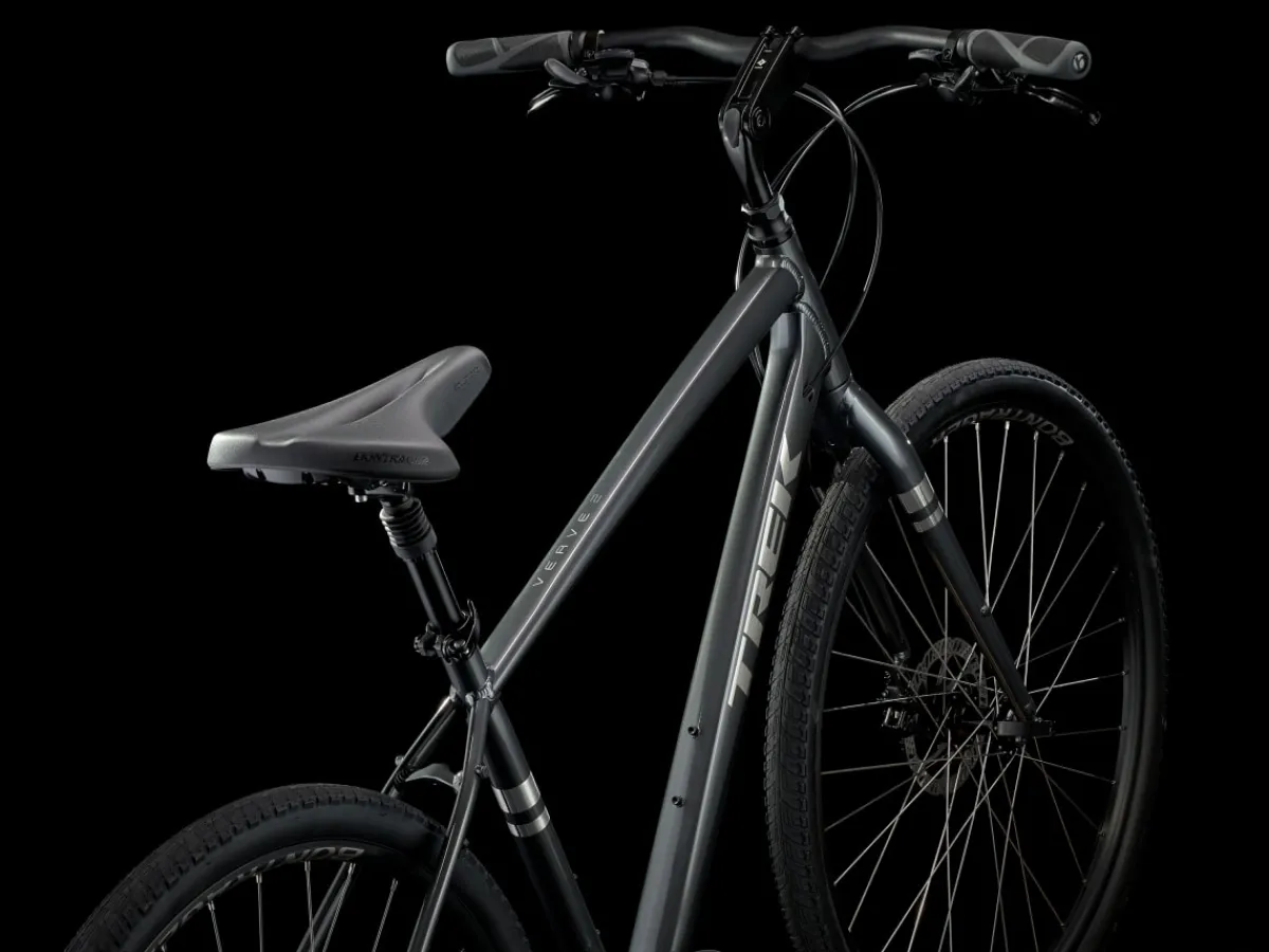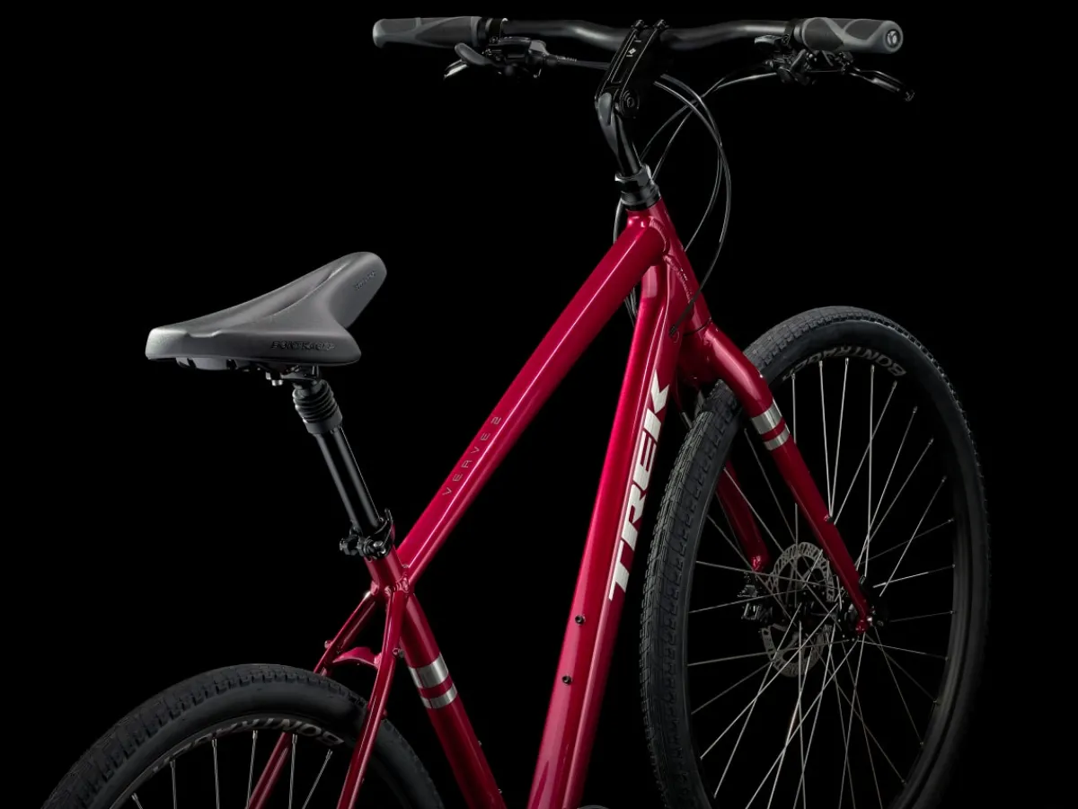 Verve 2 Disc is a hybrid bike designed for comfort and fun on commutes, cruises, and fitness rides. It has a lot of thoughtful features that make for a confident and comfortable ride, like a suspension seatpost, padded saddle, and disc brakes that perform in any weather.